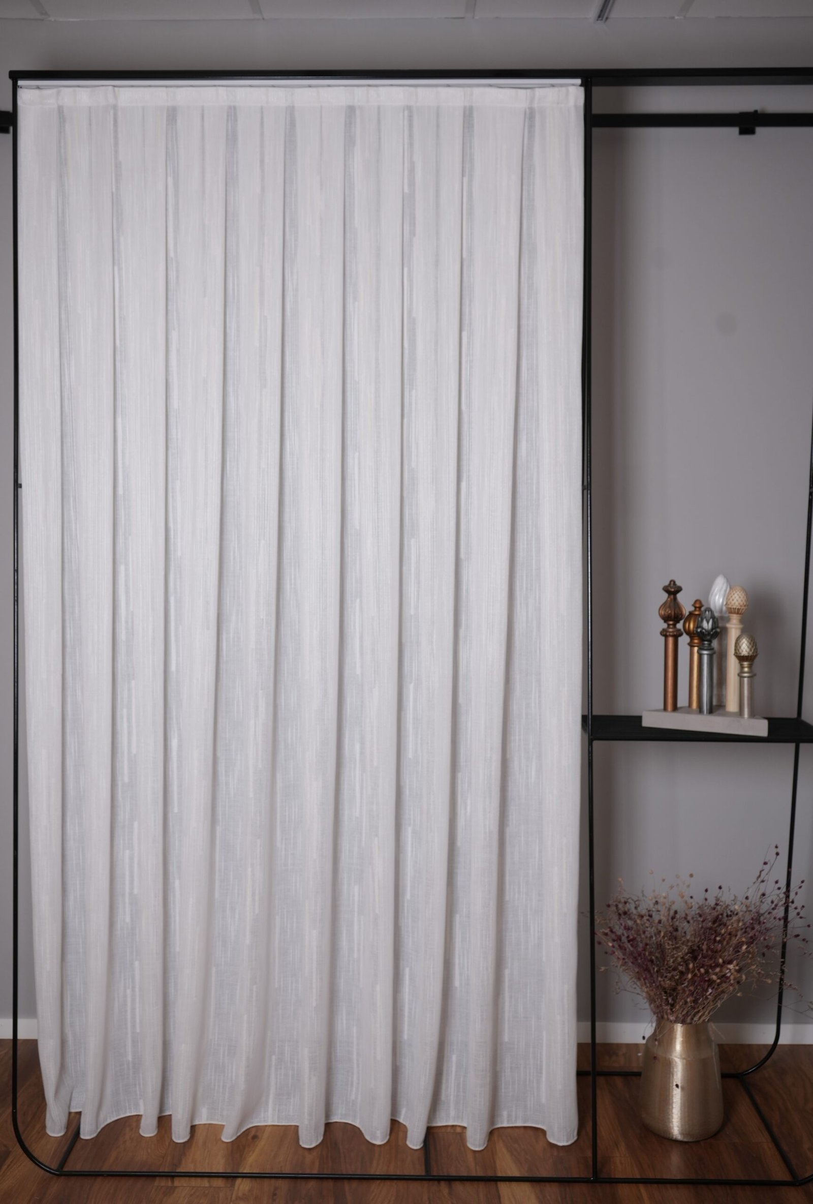 Entdecken Sie Isabella – einen aussergewöhnlichen Vorhang, der durch sein einzigartiges Streifendesign sofort beeindruckt. Die abwechselnden Bahnen aus glatten und strukturierten Stoffbereichen schaffen ein faszinierendes Spiel aus Licht und Schatten, das Ihren Fenstern eine edle, luxuriöse Ausstrahlung verleiht. Isabella ist die perfekte Wahl für alle, die besonderen Wert auf exquisites Design und erstklassige Qualität legen.